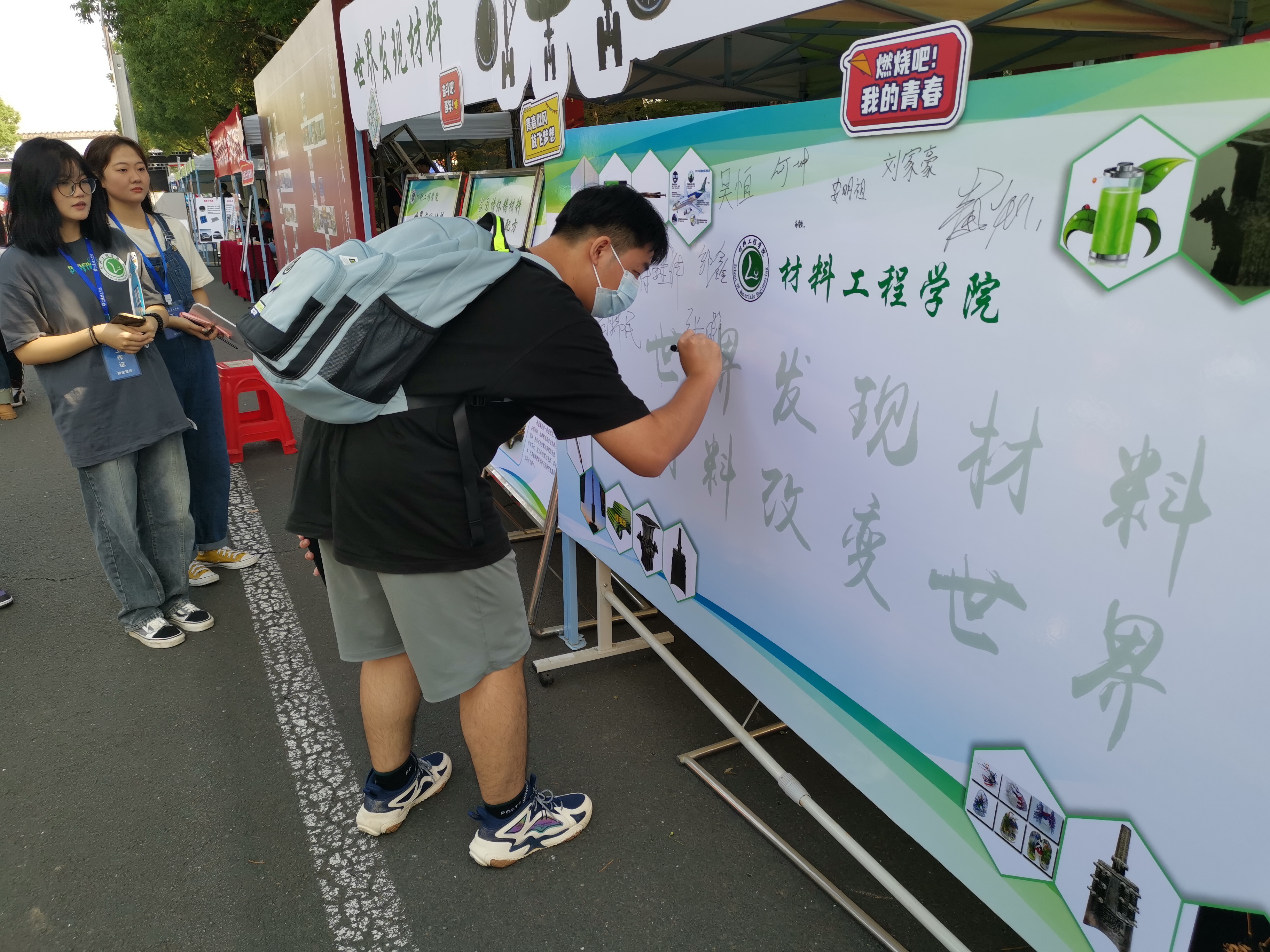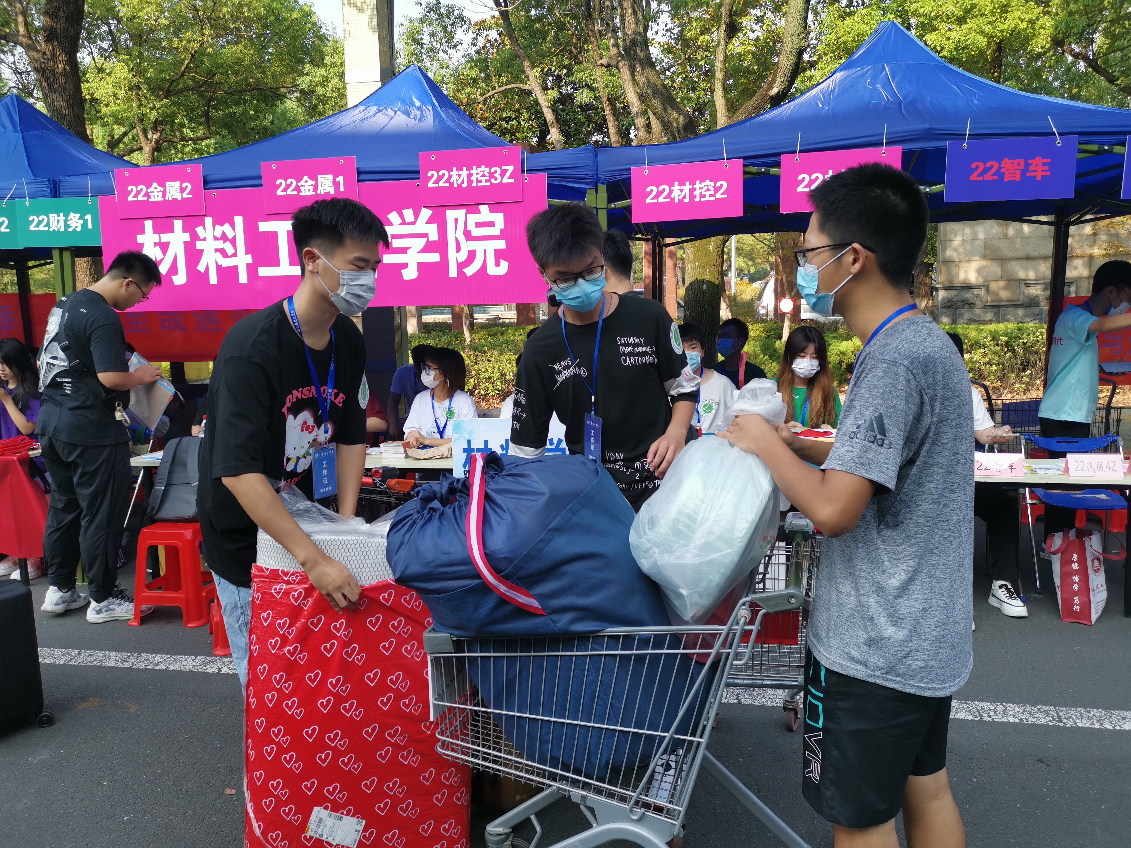 9月17日、20日,新生按照省外、省内分两批陆续报到。校领导、学院党政领导一行亲临报到现场检查指导迎新各项工作。我院辅导员、导生等迎新工作人员早早就位,师生通力合作,迎新现场秩序井然。百余名学生志愿者积极帮助新生搬运行李、办理报到手续,以热情周到、文明高效的服务迎接新同学的到来。在学院精心布置的“世界发现材料,材料改变世界”迎新特色展区前,同学们纷纷驻足,学习了解古今材料制造工艺成就和新材料在当代科技创新中的应用,志愿者们向新同学介绍材料专业的历史传承,并引导他们在迎新板上签名留念。
