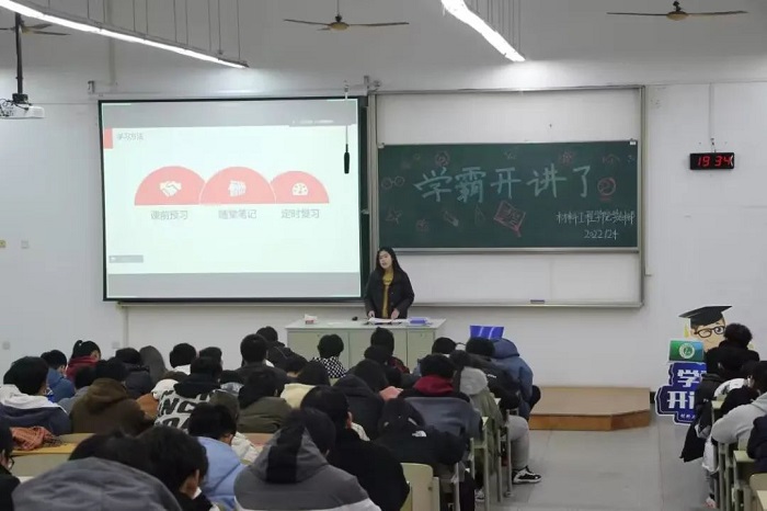 许严提醒同学们不要荒废大一生活,要提早为大二、大三的学习做规划。并通过对大二课表的展示,为同学们讲解了不同课程的学习内容和学习要点,建议同学们注重课前预习、随堂笔记和定时复习,找到自己的学习方法。