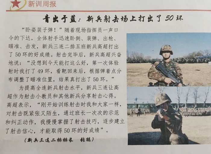 答:在新兵连中,根据特长我被分配到了狙击手。狙击手这个听起来很酷,但实则是一项很累的任务。要考虑到很多因素,如气压、风速、温度、湿度等。此外,一旦瞄准器偏离1毫米,那么子弹将会偏离射击靶30厘米。为了减少失误,我们每天进行据枪训练,数小时保持不动,让身体形成肌肉记忆,从而保持最佳的射击状态。历经三个月的艰苦训练,我被调到电报组。在此之前,我从来没想过可以摸到电脑。但电脑只是我们每天工作的一个工具而已,打开它,耳机一戴,便进入了工作模式。我们每天都要写10页电报,除此之外,还会给我们留作业。并且还有考核,错一个字扣18分,80分才及格。在我看来,这必须认真对待,不容失误。这与纪律无关,是我肩上的一种责任,是我作为一个执行者应尽的责任。