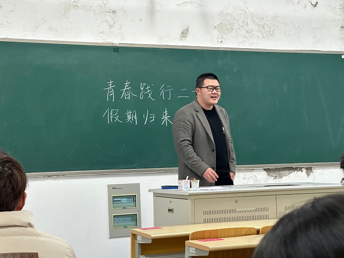 20材控1、2班班主任谢利老师与同学们分享了假期里自身的科研情况、与优秀校友交流的体会,并邀请同学分享假期所见所闻、所思所想。他告诫同学们注重安全,努力学习,及早谋划职业发展,熟练掌握赖以谋生的一技之长,特别鼓励同学们积极备战考研。主题班会通过生动活泼的形式,引导同学们正确认识理想信念,自觉担负时代赋予的使命,将个人理想和国家前途、民族命运紧密结合在一起,在推进中国特色社会主义现代化的伟大实践中书写美好的人生。谢利对同学们过去一年来的努力和成绩予以肯定,同时也分析不足,提出了改进建议。同学们表示:谢老师与大家用心、用情交流,起到了很好地思想引领、凝聚共识、帮扶指导的教育作用,对同学们的成长成材发挥了重要作用。
