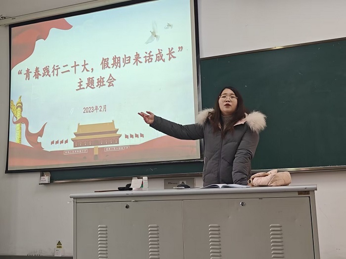 为了更好地迎接新学期的到来,引导学生及时转变学习状态,营造向上学风,新学期伊始,我院组织各年级、各班级开展“青春践行二十大,假期归来话成长”主题班会课。
