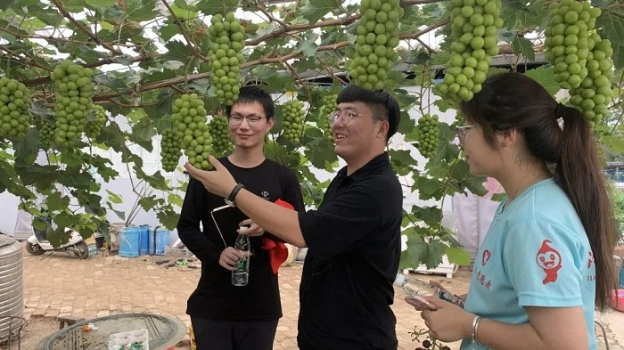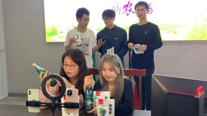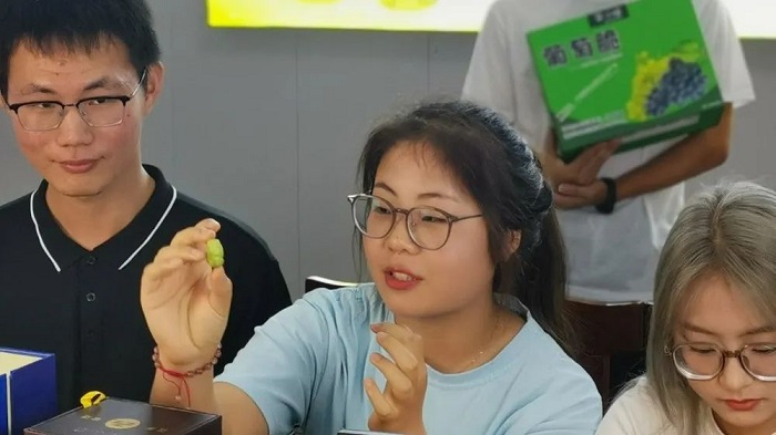 乡村振兴,青年先行。7月17日至19日,同学们化身带货主播,连续3天以直播的方式向观众推广“柒小恒”葡萄脆、陈集大曲等特色农产品,介绍陈集葡萄的品牌故事,宣传陈集三产融合的发展思路和成效。3场直播共吸引近1200人次观看,收获点赞次数近3.5万。