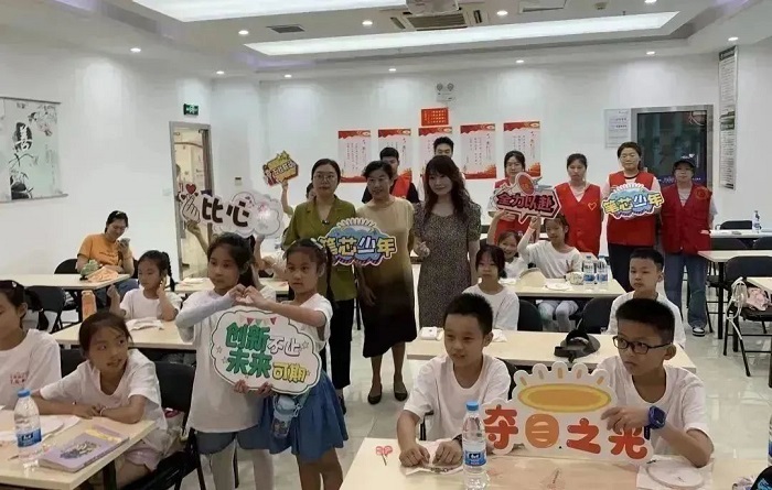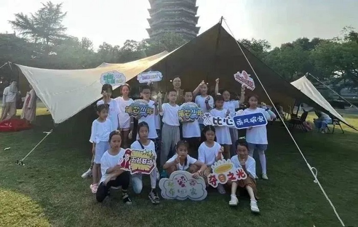 “笔芯少年,一往无前!”8月11日下午,一声声响亮的童声回荡在红梅公园大草坪上空,吸引了往来游客的注意。这是我院与天宁街道文笔塔社区、常州天宁胜境运营管理有限公司等党建联盟单位联合开展的“童心起航·筑梦前行”红色研学活动。通过常州非遗乱针绣体验、红色知识宣讲、红色地标党建打卡等环节,提升青少年创新精神和实践水平,传承常州文化血脉与红色基因。