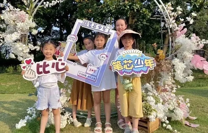 最后,以天宁街道“打开天宁-寻找多彩老城厢”党建打卡为依托,大家在文笔塔、天宁宝塔等主题区合影打卡,拍摄“比心”照片。小朋友们纷纷兴奋地喊出“笔芯少年,一往无前!”的活动口号。