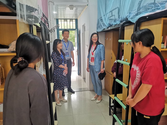 当天下午,副校长叶霞在学院党政领导的陪同下走访新生宿舍,了解新生住宿适应状况,关注新生思想动态,关照同学们要相互帮助,形成良好的宿舍氛围,共同进步,叮嘱同学们尽快调整状态,为即将开始的大学生活做好充分的准备。