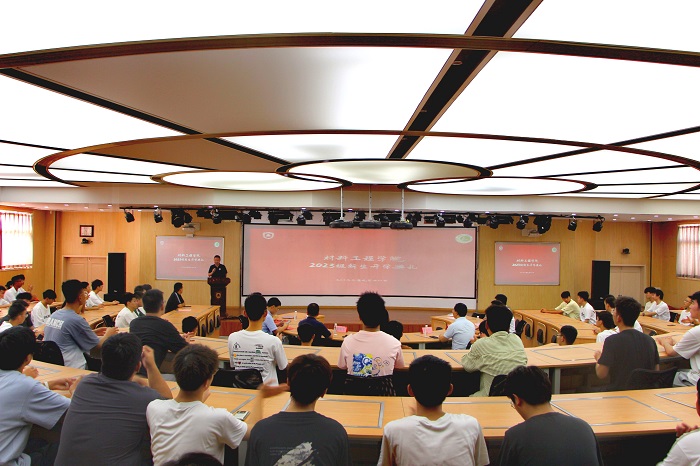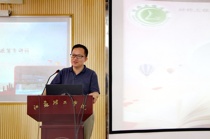 专业教师代表、材料成型及控制工程系谢利博士发言,以“爆料”的形式,向新生展示了学院强有力的师资团队和材料专业广阔的就业前景,他指出,每个人前进的方向和途径才是最重要的,希望大家四年后回首不留遗憾。