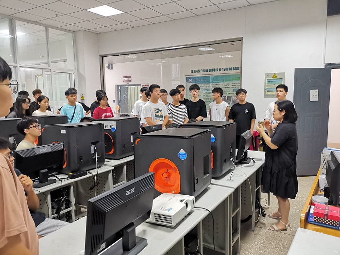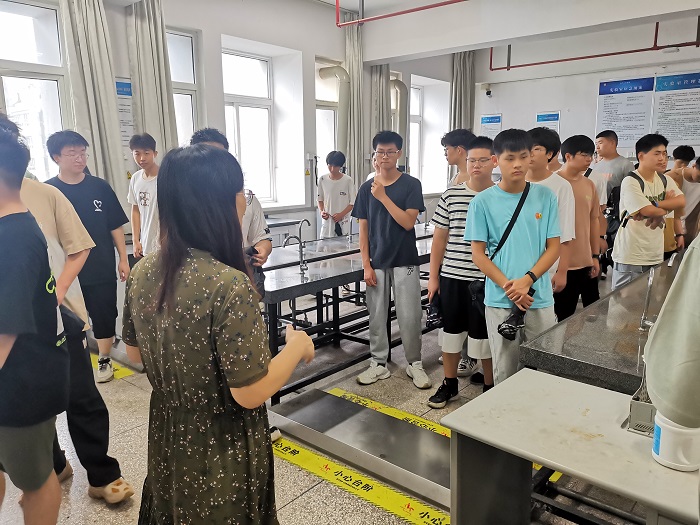 第二阶段,全体新生在学院实验中心的指引带领下参观知行楼各楼层实验室,实验中心副主任王健就实验室水、电、气等安全问题和注意事项进行了细致的讲解,同时示范了灭火器的使用规范,要求新生从入学开始就要树立安全意识,严格遵守操作规范,养成良好的实验室使用习惯。在参观过程中,各实验室负责教师详细介绍了实验室用途、实验课程内容、实践环节安排、大型仪器设备等。通过现场参观,同学们对专业特点、实验课程有了更加深入直观的理解,对于培养专业兴趣、激发学习热情、感受学术氛围,尽快融入大学学习起到了良好的推动作用。