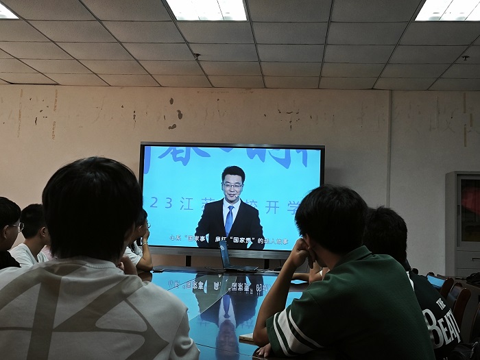 9月25日上午,我院按照学校统一安排,组织各班级在知行楼512会议室、教室和宿舍集中收看“让青春与时代同行—2023江苏高校‘开学第一课’”。“开学第一课”从有理想、敢担当、能吃苦、肯奋斗四个篇章,激励大学生牢记嘱托,把牢根本方向,勇挑时代重任,砥砺青春意志,努力争创一流,以昂扬奋进的姿态开启新学期新征程。
