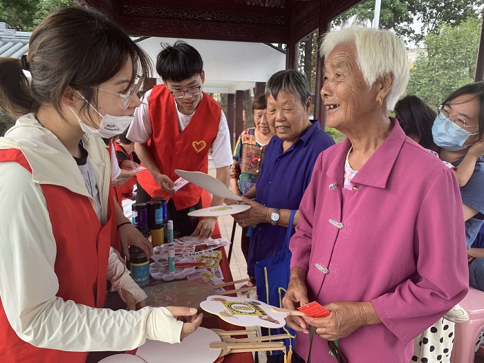 活动当天,竹园社区设置了免费理发、免费口腔检查、反诈宣传及征兵宣传窗口,现场为群众解答相关政策事宜,为辖内居民提供贴心便民的服务。我院学生组织了中秋国庆主题团扇DIY活动,同时协助社区开展反诈宣传、征兵宣传。