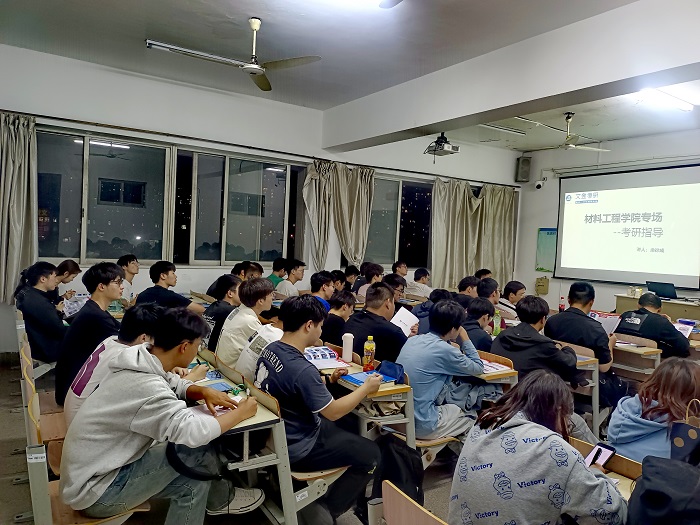 会上,主讲教师结合材料专业,从考研方向专业分析指导、往年录取数据分析、学硕/专硕备考建议、高校复习规划指导四个方面为同学们进行了最新考研资讯分析,给出了不同科目的初试题型和相关信息的查询路径,希望同学们认清形势,尽早准备,掌握资源,制定个人备考计划,合理安排时间,一步一个脚印,成功上岸。(图文/吴刚辉;审核/占成;编辑/占成)