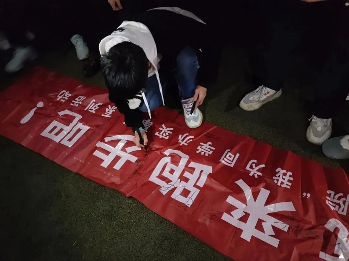 为进一步引导大学生走下网络、走出宿舍、走向校园,养成体育锻炼习惯和健康的生活方式,牢固树立“健康第一”的信念。我院于今年启动荧光夜跑活动。上学期的“春夏季”夜跑得到了同学们的广泛响应,一学期以来,共有近400人次参与夜跑,在校内形成了一道靓丽的风景线。本学期,“荧光夜跑(秋冬季)”继续常态化开展。12月1日晚,“荧光夜跑(秋冬季)”启动仪式在西苑操场正式举行。本次荧光夜跑面向所有新生,大家在横幅上签字留念后,领取学院定制的荧光手环,活动正式开始。