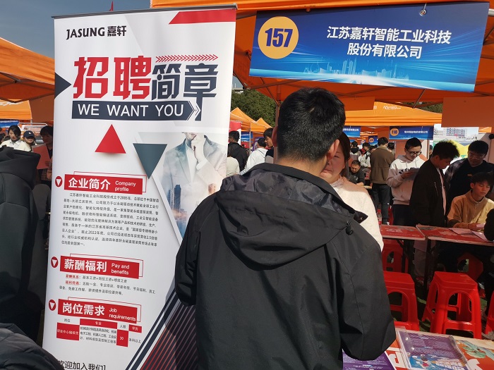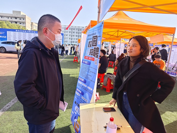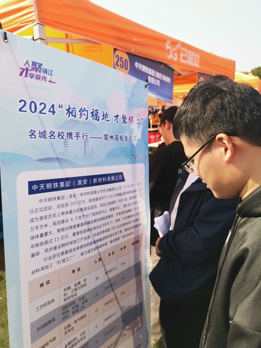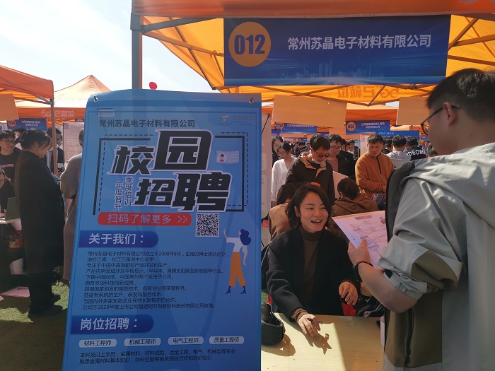 3月22日下午,江苏省2024年春季促就业攻坚行动专场招聘会在南苑田径场举行。院党委副书记兼副院长占成在学工办、辅导员的陪同下到双选会现场进行了走访调研。本次招聘会吸引了400家用人单位进校招聘。在访企拓岗专区,院领导走访了常州苏晶电子材料有限公司、江苏兴荣铜业有限公司等用人单位并进行了深入交流。