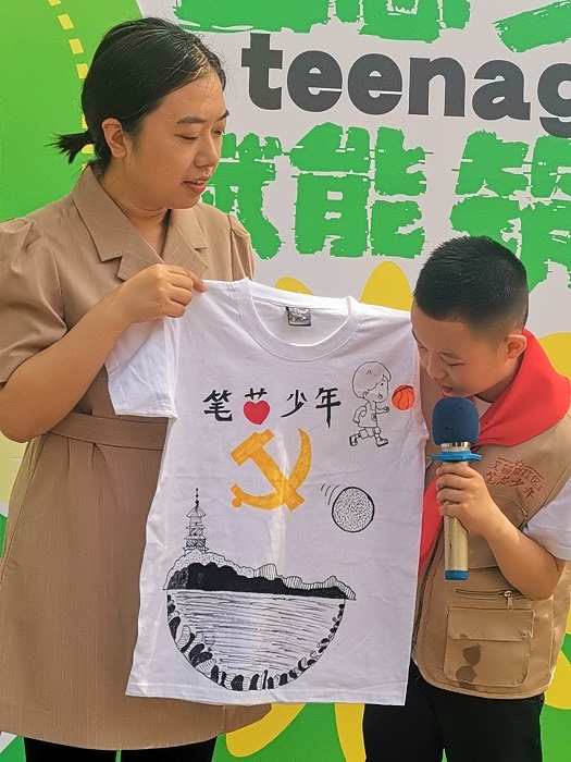 活动伊始,我院“星耀‘材’华”“两弹一星”精神志愿宣讲团与“笔芯”青少年志愿服务队以互赠物品的形式举行了结对仪式,为两支团队以后一起共建打下坚实基础。活动中,宣讲团成员带着小朋友用铿锵有力的声音表明了志愿服务的初心和使命担当,同时协助文笔塔社区积极做好活动的志愿服务工作,为小朋友参与心理互动游戏提供帮助,指导小朋友进行亲子文化衫绘制等等,宣讲团成员表示将积极践行使命,引导小朋友们坚定不移听党话、跟党走,做有理想、敢担当、能吃苦的新时代好青年。