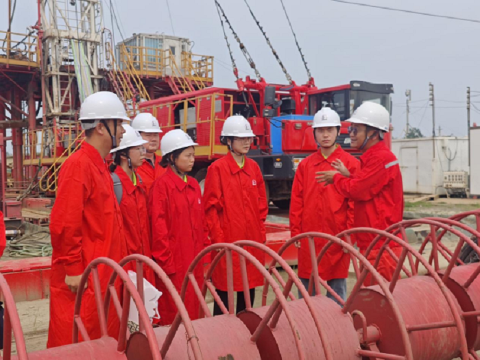 在江苏油田真武集中处理站,该师生科创团队听取了一批“油二代”守正创新的故事,该站多年保持“零事故”的纪录。在油田钻井作业现场,科创团队学习到钻井过程中不但要实时监测泥浆性能,还要动态调整钻井工艺参数。