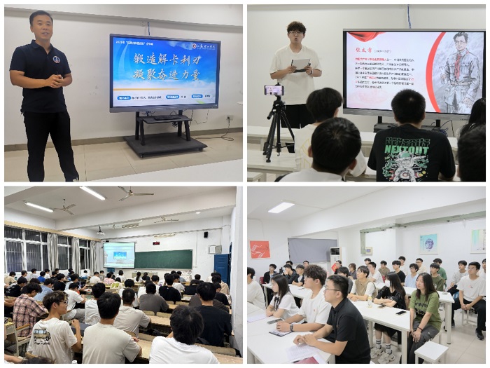 活动分为四个环节。社会实践指导教师代表王明智介绍了指导“探寻解卡技术,激活地下油藏”团队暑期社会实践的成果与感悟,通过详实的案例和生动的讲述,展现了材料学子深入企业、走进基层,将专业知识运用于实际问题的探索历程,体现了“知行合一”的育人实效。分团委学生兼职副书记郭晨晨作校本课程《青春基因 赓续百年》专题宣讲,课程聚焦“常州三杰”的革命事迹与精神传承,引导同学们从地方党史中汲取信仰力量,筑牢青春使命担当。在“两弹一星”精神主题宣讲环节,学生会主席团成员杜婉婷以《党领导下的中国核工业》为题,回顾了中国核工业艰苦卓绝的发展历程,阐释了“热爱祖国、无私奉献、自力更生、艰苦奋斗、大力协同、勇于登攀”的“两弹一星”精神内涵,激励同学们树立科技报国之志。