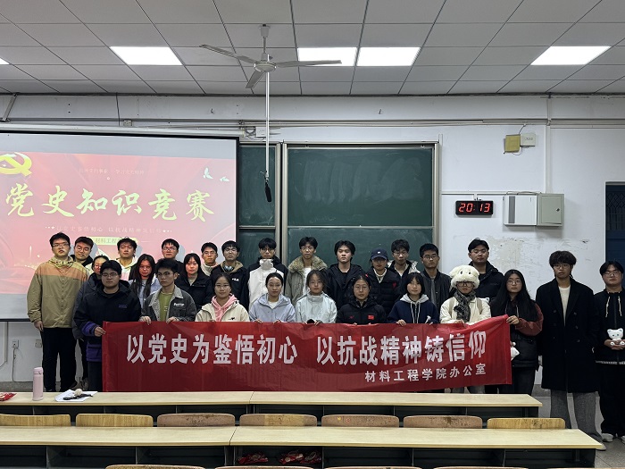 为深入推进党史学习教育,引导广大青年学生铭记光辉历史、缅怀革命先烈、传承红色基因,1120日晚,我院在59号楼西三阶教室举办“以党史为鉴悟初心,以抗战精神铸信仰”党史知识竞赛暨新思想公开课,旨在通过知识竞赛的形式,激发同学们学习党史的热情,在比拼中深化理解,在感悟中升华思想。本次活动由院学生会办公室主办,各班级学生代表参加了比赛。