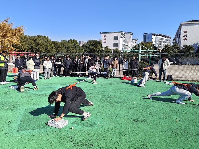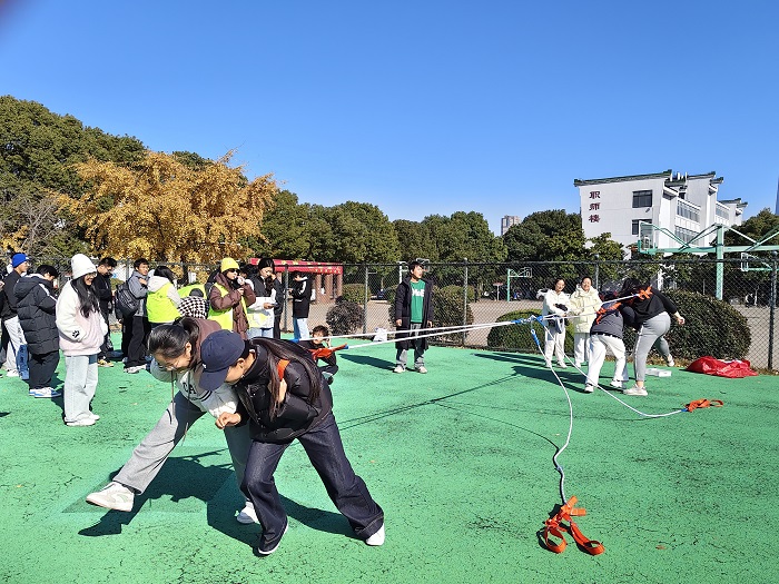 比赛过程中,每个队伍都展现出了极高的团队凝聚力和竞技精神,队员们紧密配合,奋力拼搏,为了团队的荣誉而全力以赴。场边观众也主动融入氛围,为参赛队伍助威,每一次绳索的轻微移动都牵动着全场目光,协作拼搏的场景成为现场最动人的风景。比赛现场气氛热烈,同学们热情高涨,经过多轮激烈角逐,活动评选出一、二、三等奖各 1 组。