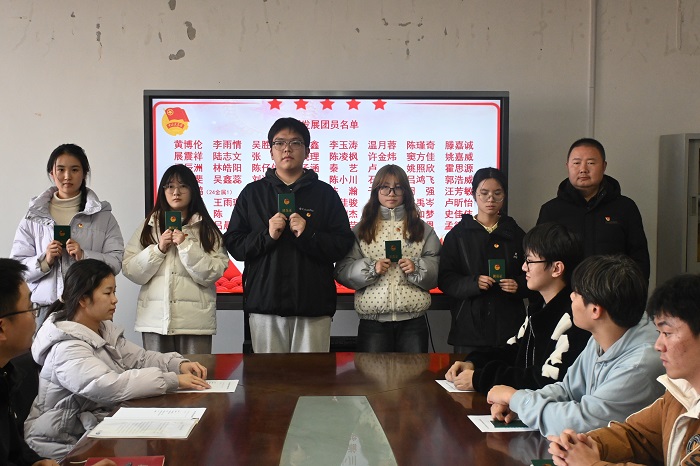 当闪闪发光的团徽佩戴于左胸前,便象征着一份殷切的希望与责任的寄托,为了引导新青年勇担时代使命,厚植家国情怀,增强团员先进性和光荣感,1216日中午,我院在知行楼512会议举行2025年新发展团员入团仪式,院党委副书记兼副院长占成、分团委书记王军琦、团委兼职学生副书记郭晨晨、2025年新发展团员及各班级团员代表参加了仪式,仪式由王军琦主持。