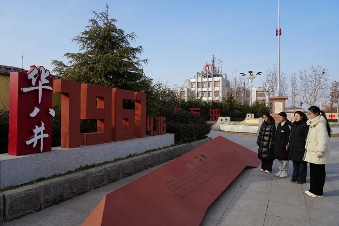 实践团首站抵达华八井纪念公园。没有繁华的布展与喧嚣的讲解,只有一座朴素的纪念碑,在冬日晴空下静静诉说着一段石破天惊的往事。